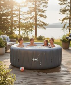 Wave Atlantic 6-Person Inflatable Hot Tub | Integrated Eco Heater | 130 Aquajet Massage System | Anti-Freeze Protection | Quick 15-Minute Setup | Gray Rattan