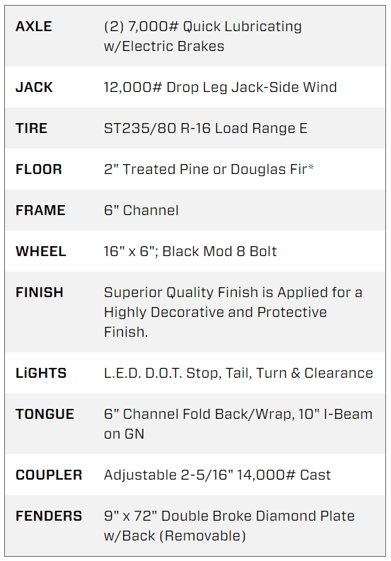 • Axles: Tandem for better stability and weight support