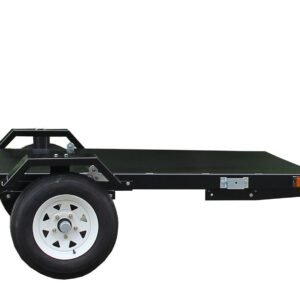 Constructed from high-strength steel and finished in black powder coating, this trailer is designed to resist corrosion and withstand rugged use. Features like a reinforced deck, safety chains, and heavy-duty tires ensure safe and efficient transport of your equipment. Perfect for contractors, landscapers, and industrial applications, it combines strength, durability, and practicality in one versatile trailer.