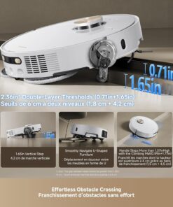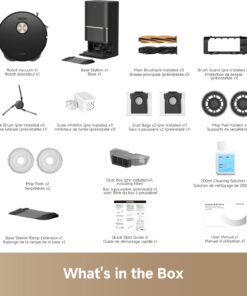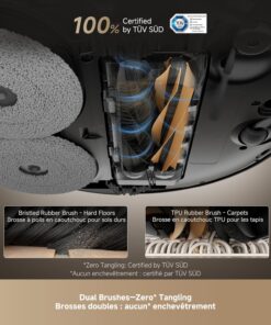 - Edge-to-Corner Vacuuming and Mopping: Achieve thorough cleanliness of corners and tight spots with Dual Flex Arm technology. Its extendable side brush and mop aptly tackle different messes beneath low-profile furniture and in narrow spaces.