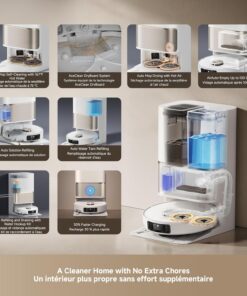 - All-in-One PowerDock Convenience: Benefit from the dock’s effortless maintenance. Skip manual dust bin emptying for up to 100 days, rinsing mop pads with hot water from all the dirt, or drying them. L50 Ultra also refills solution and water for mopping and auto-washes its board, creating a hands-free post-cleaning routine.