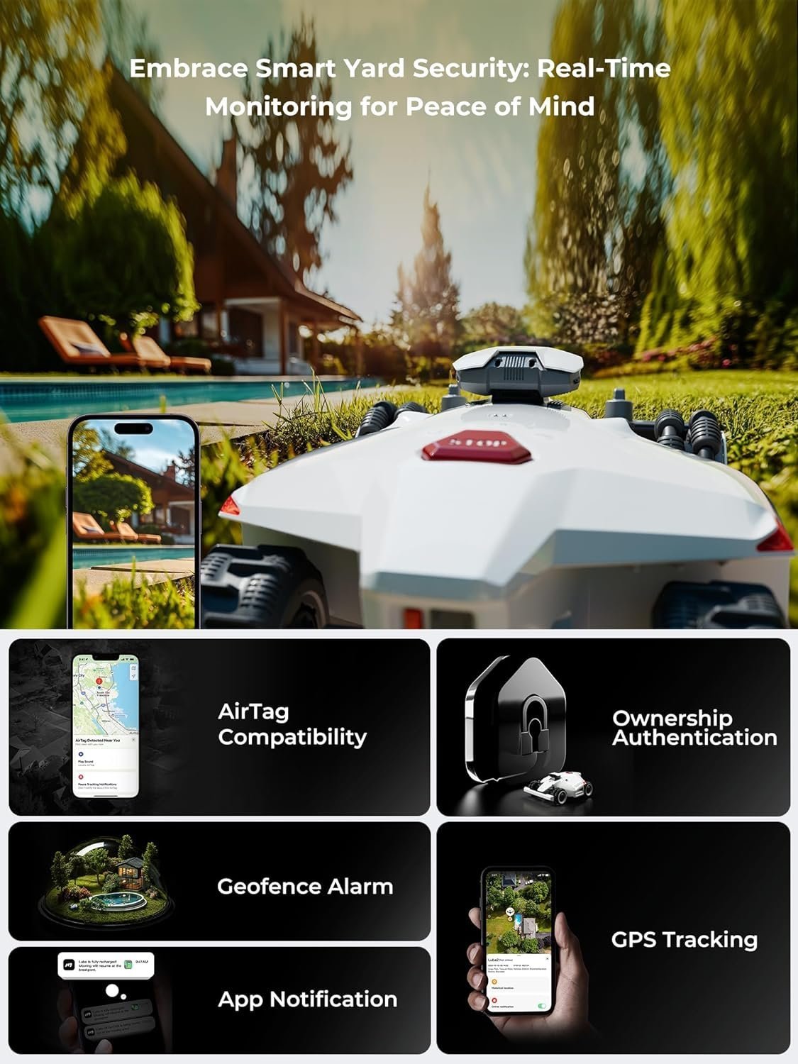 - GPS Theft Protection, Never Worry About Your LUBA Lost: Equipped with anti-theft system and a built-in alarm system, if someone took your Mammotion LUBA 2 AWD 5000H lawn robot, you can instantly secure and track its location through the Mammotion App. The individual activating the device initially becomes its rightful owner. Ownership Authentication supports the “lost” feature, unauthorized users cannot operate the machine.