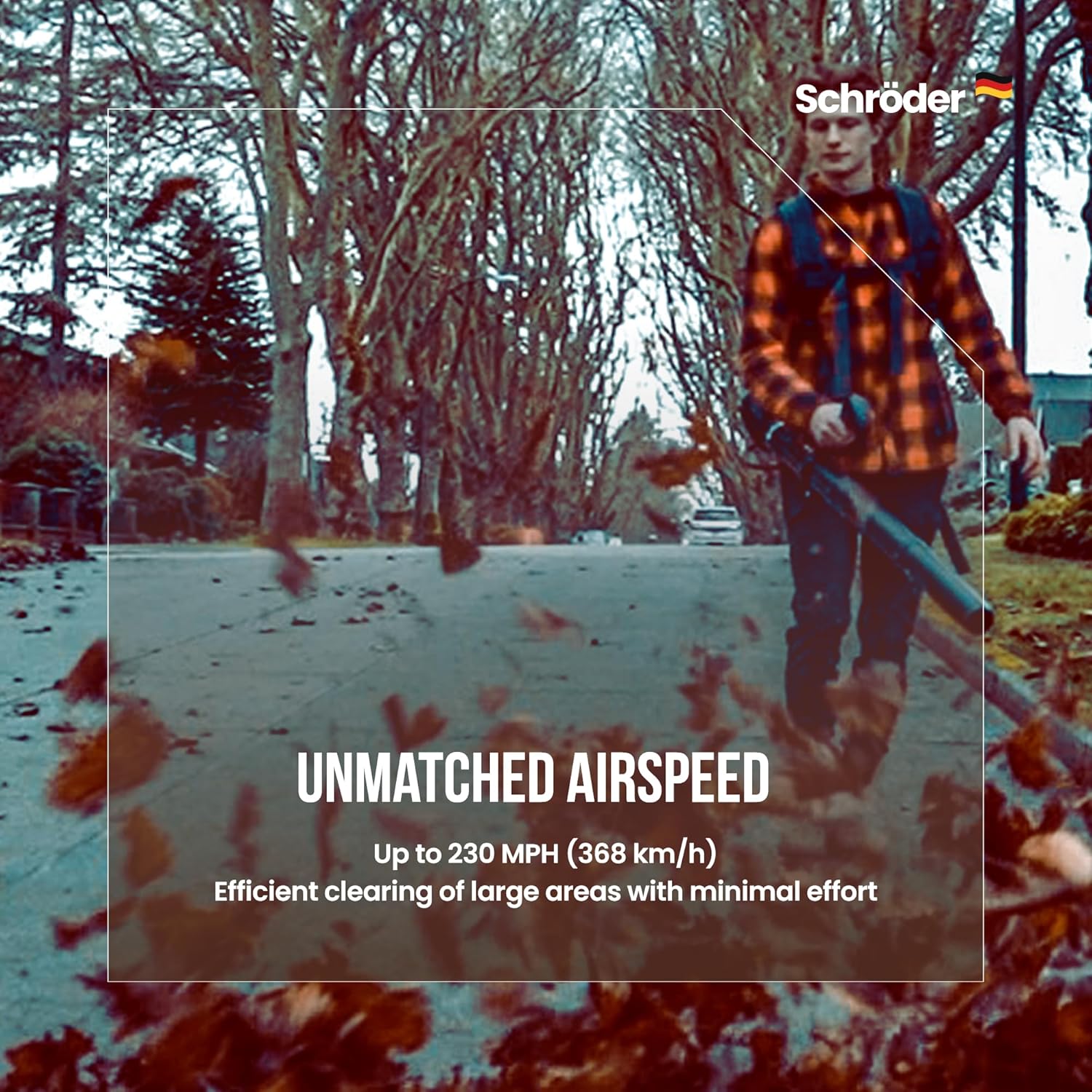 - Powerful Performance: Featuring a 63.3 cc, 2-stroke 3.7 HP engine, the Schröder SR-6400L delivers up to 230 MPH airspeed and 920 CFM air volume, making it ideal for tackling wet and dry debris effortlessly.