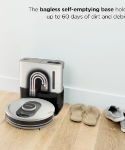 - IT EMPTIES ITSELF: The bagless, self-emptying base holds up to 60 days of dirt and debris. The bagless base does not require any additional purchase of disposal bags like traditional auto empty robots.