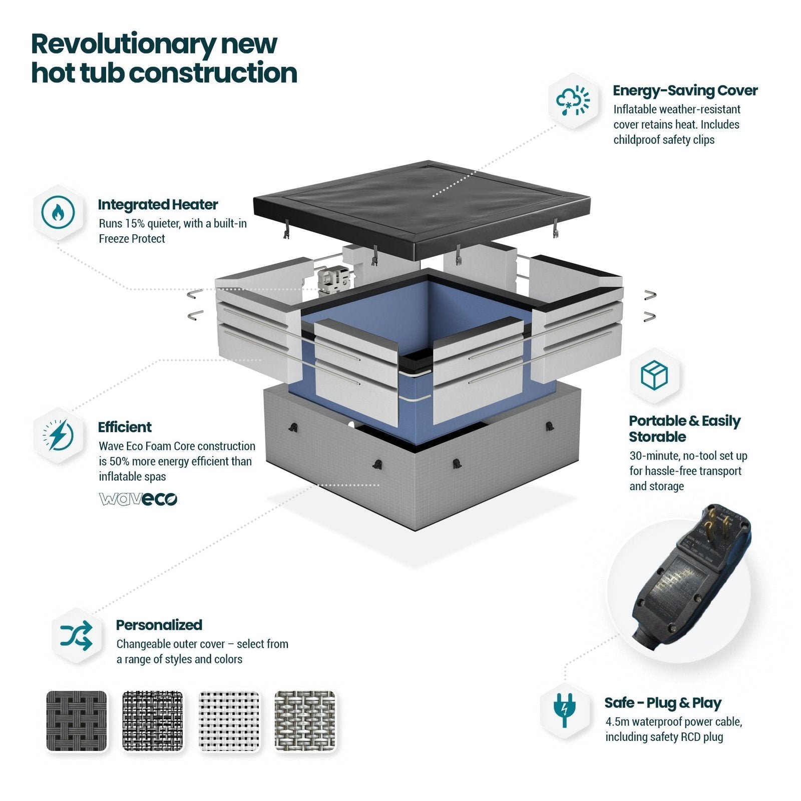 Wave Garda | 4-Person Eco Foam Hot Tub | Integrated Heater | Charcoal Black